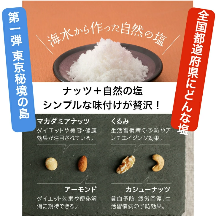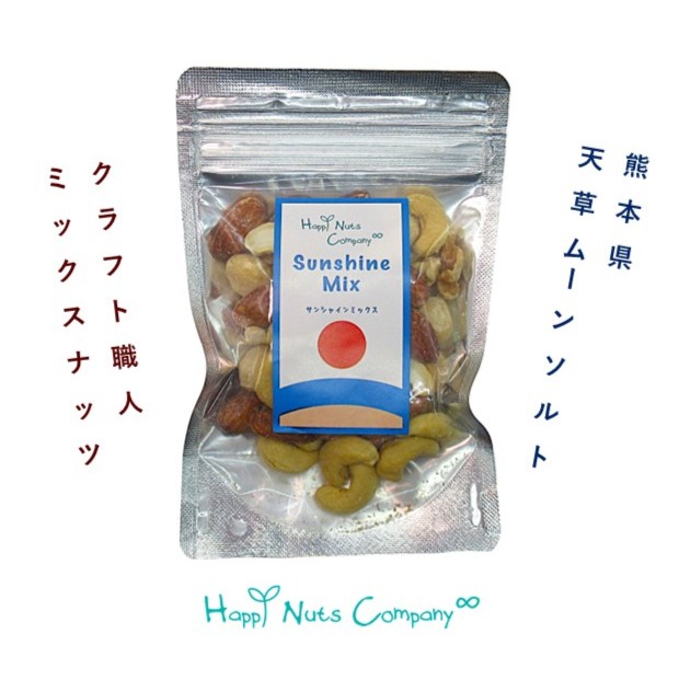 • 熊本県ムーンソルト ミックスナッツ 有塩 60g こだわりの塩 こだわりの4種ナッツ 全国各地塩とタイアップ アーモンド カシュー くるみ マカダミア ナッツ happynutscompany ナッツ専門店